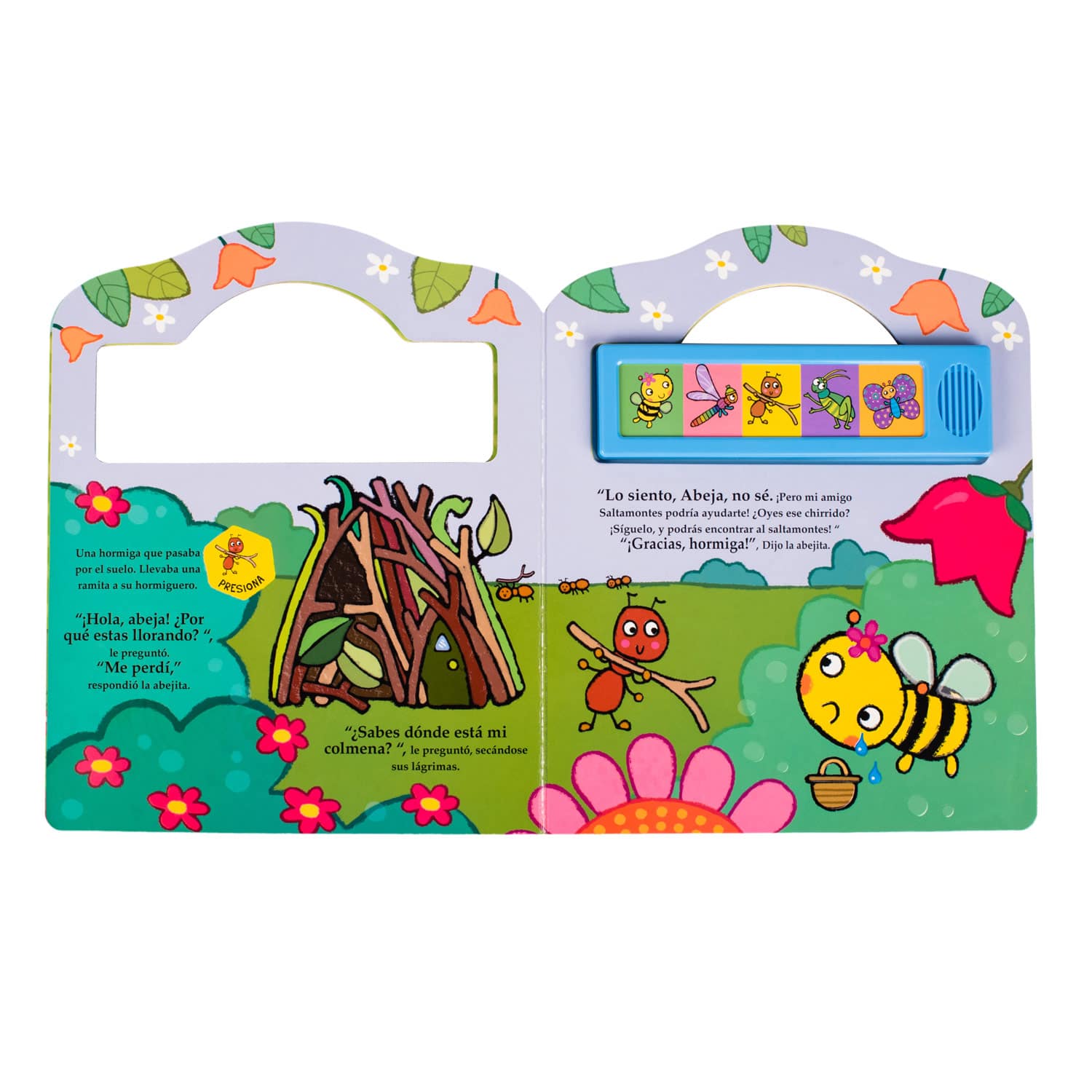 ¡Es muy emocionante explorar el mundo de los insectos! Encantadoras ilustraciones con brillo y efectos táctiles en cada página hacen que este libro sea especial, cautivador y divertido de leer. Los niños podrán presionar sobre los animales y escuchar su sonido característico, mientras disfrutan de la historia.