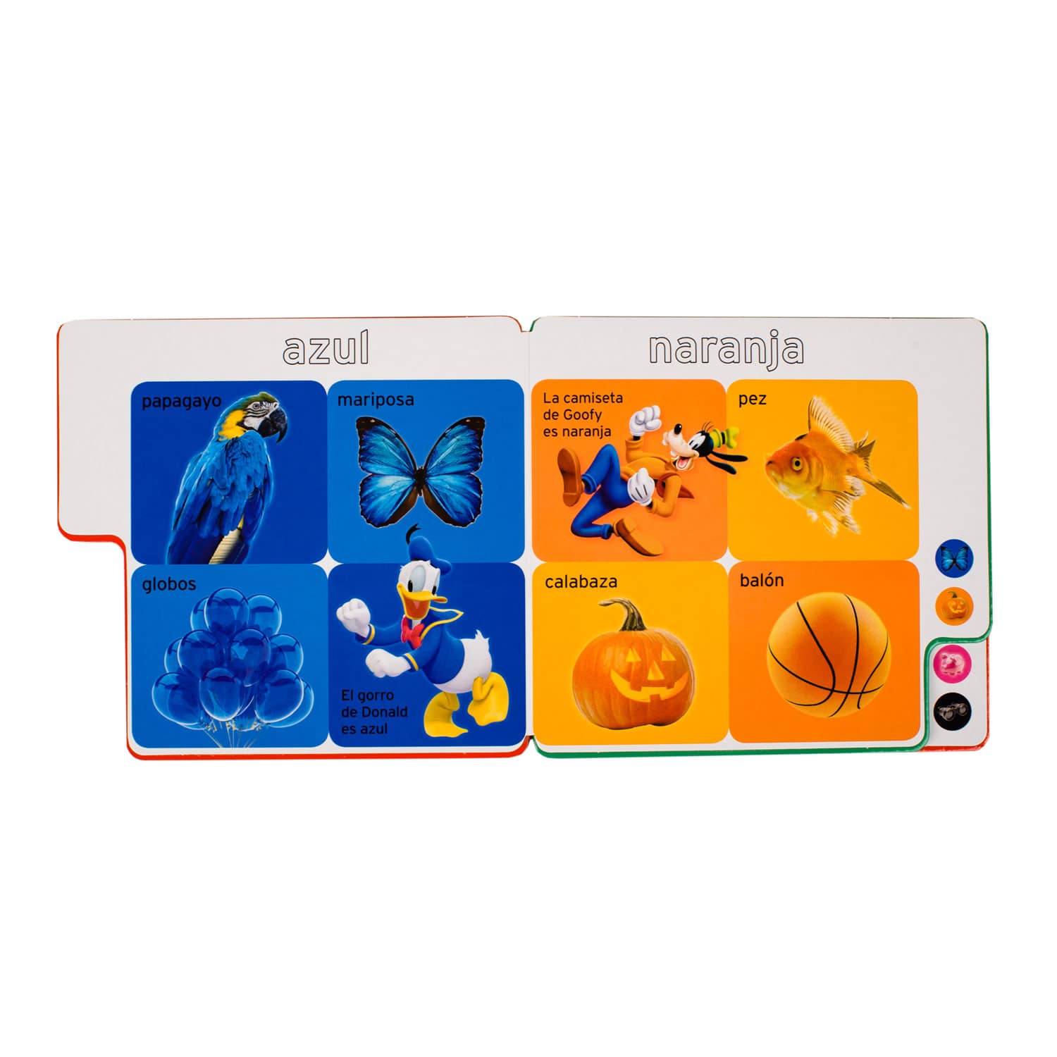 ¡Pasa las pestañas para aprender! Con esta colección su hijo aprenderá de manera fácil y entretenida. Descubre junto con Mickey y sus amigos el mundo de los colores.